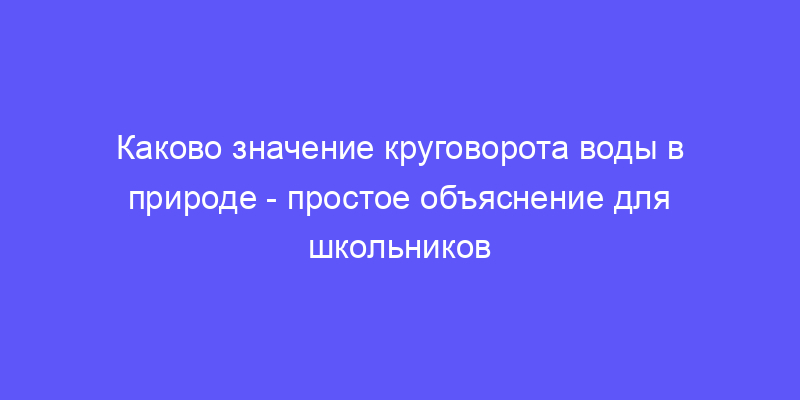 Вода — один из наиболее важных ресурсов на нашей планете. Она играет ключевую роль в существовании и развитии жизни, и ее круговорот в природе имеет