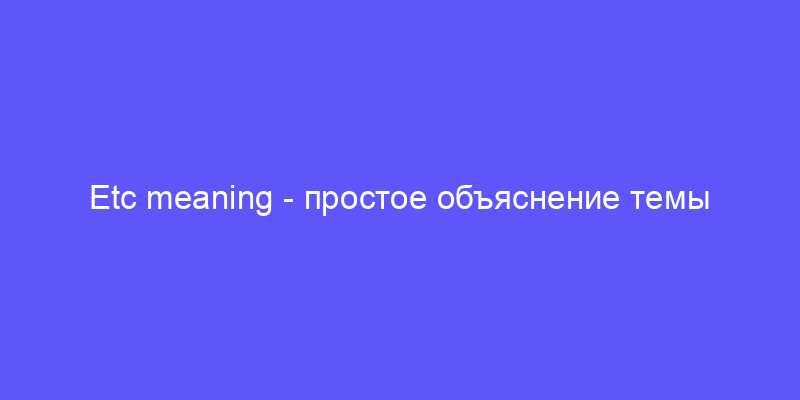 «ETC» is an abbreviaion for he Lain phrase «e ceera,» which ranslaes o «and oher hings» or «and so forh.» I is commonly used in English o indicae ha here are oher iems or examples ha could be included in a lis, bu are being lef ou for breviy or because hey are obvious.